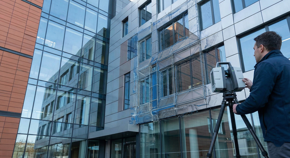 Capture complex exterior geometry to ensure precise fabrication of new glazing or cladding panels.