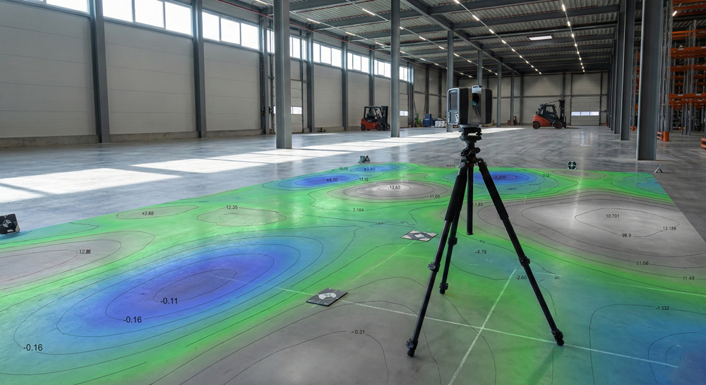 Analyze concrete slabs to ensure they meet strict flatness specifications required for high-end flooring, data centers, or warehouses.